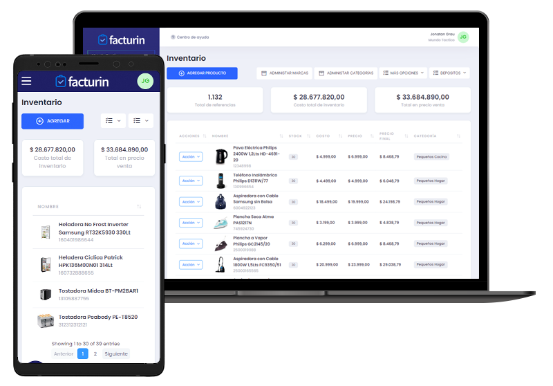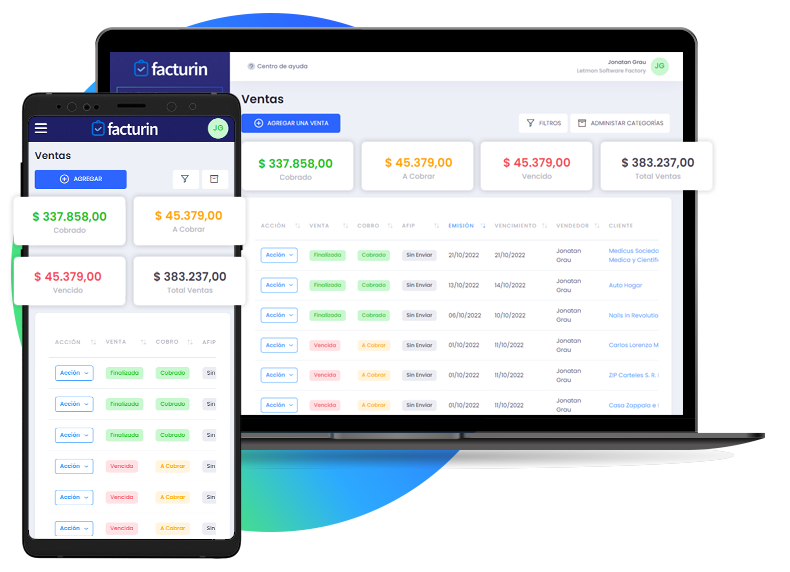 Facturin es la herramienta de facturación online, gestión de stock y clientes diseñada para personas que quieren ahorrar tiempo y simplificar la administración diaria de tu negocio.